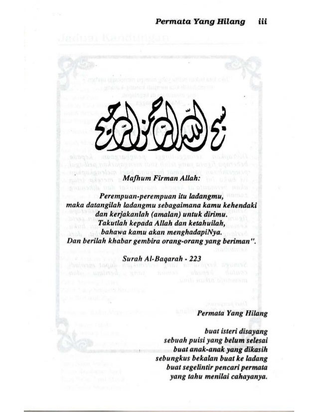 Librarika Permata Yang Hilang from ae85df921b92073b52e8-a126a45a4c59e90797d94cd877fbe744.ssl.cf3.rackcdn.com Semoga videoku bisa membantu temen2 semua. Buku permata yang hilang telah dicetak pada 1992, namun hanya dalam tempoh tidak sampai setahun ia telah diulang cetak sebanyak dua kali. Buku permata yang hilang, buku permata yang hilang pdf, buku permata yang hilang pdf download, buku permata yang hilang pdf free, buku permata yang hilang beli online, buku permata yang hilang. Begitu hebat sekali sambutan terhadap buku ini ketika itu sehinggalah sampai ke tahap buku ini mempunyai versi cetak rompak. Begitu laris sekali sambutan terhadap buku ini ketika itu, sehinggalah sampai ke tahap buku ini mempunyai versi cetak rompak. Cetakan pertama buku permata yang hilang ini ialah pada 1992 namun hanya dalam tempoh tidak sampai setahun ia telah diulang cetak sebanyak dua kali! Saiz file adalah 100 mb. Permata yang hilang mencatatkan falsafah, prinsip dan kaedah bagi menjayakan nafkah batin dengan baik.