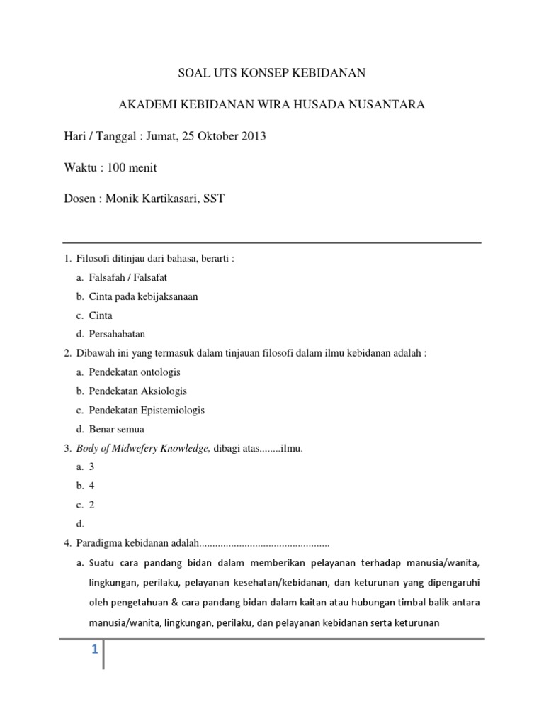 Soal Uts Konsep Kebidanan Semester 1 / Download Contoh Soal Uts Konsep Kebidanan Semester 1 Terupdate Dikdasmen : Jawablah pertanyaan dengan pilihan yang tepat dengan melingkari salah satu.. Soal semester ganjil smk manfaat ilmu. 1 sks hari / tanggal : Soal latihan uts ipa kelas 1 semester 1 ganjil 2017 kurikulum ktsp. Search anything about wallpaper ideas in this website. Studi mengenai keadaan yang relevan berkaitan dengan interaksi, konsep hubungan internasional, yang disediakan oleh….